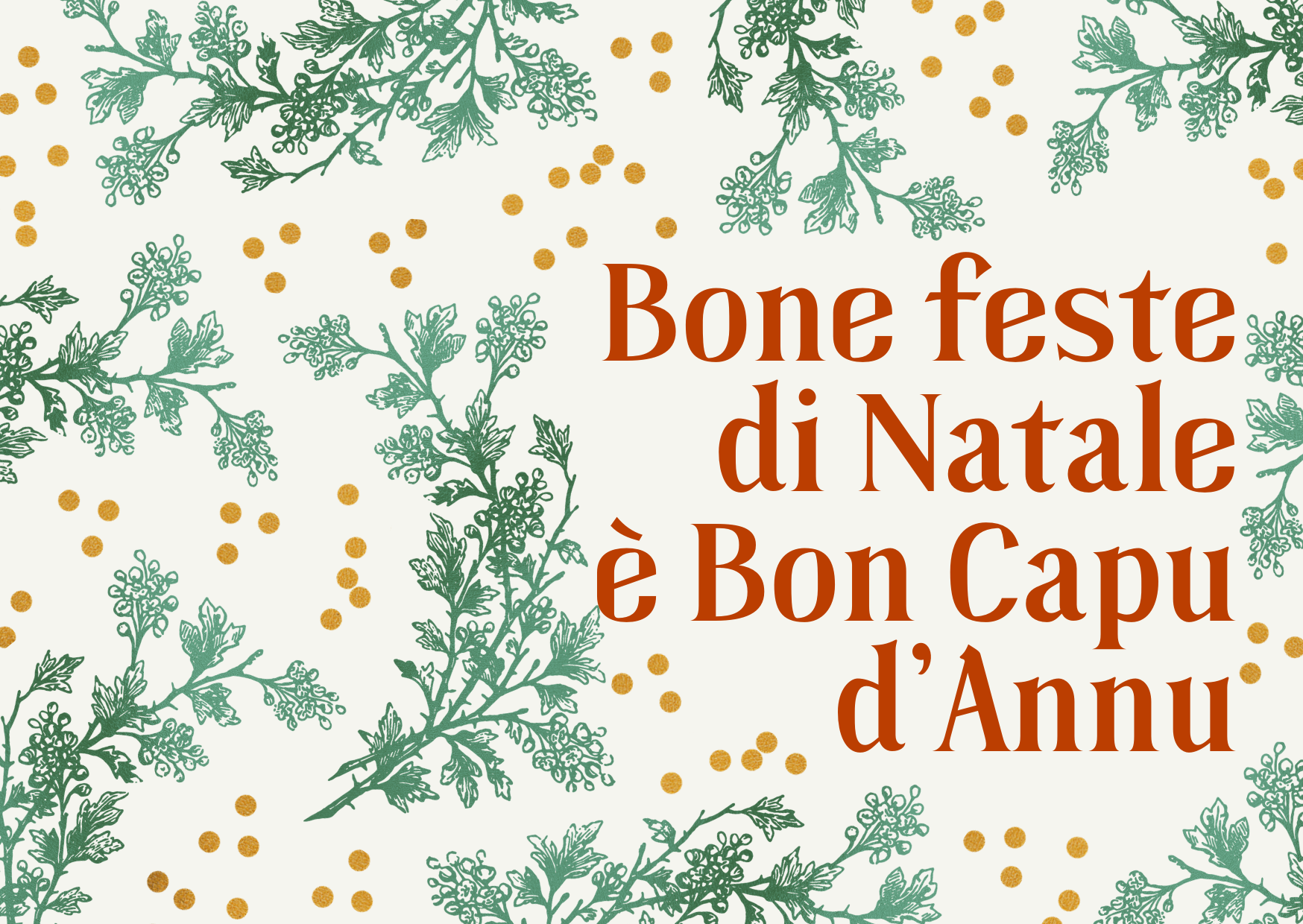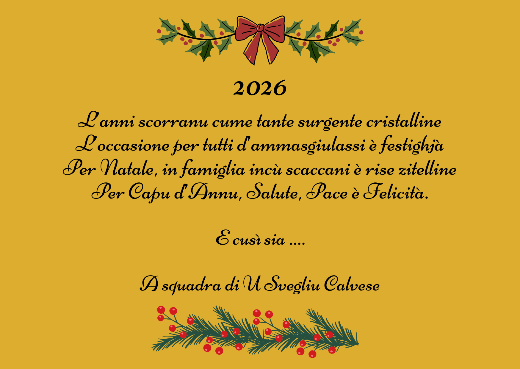 L’anni scorranu cume tante surgente cristallineL’occasione per tutti d’ammasgiulassi è festighjàPer Natale, in famiglia incù scaccani è rise zittelinePer Capu d’Annu, Salute, Pace è Felicità.